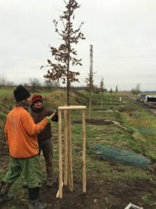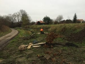 Výsadba velkých alejových stromů na okraji obce Mydlovary v rámci rekultivace nevyužívané plochy podél polní cesty.