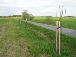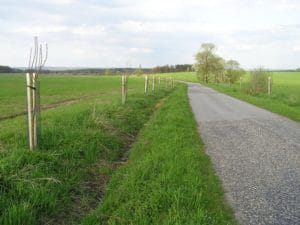 Výsadba třešní podél místní komunikace ve vlastnictví obce Radošovice. Oboustranná alej výrazně přispívá ke zlepšení ekologické diverzity krajiny, která je v místě výrazně negativně poznamenána intenzivní zemědělskou činností.