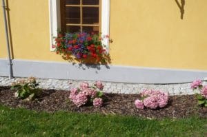 Výsadba na nádvoří zámku v Borovanech a přilehlém okolí.