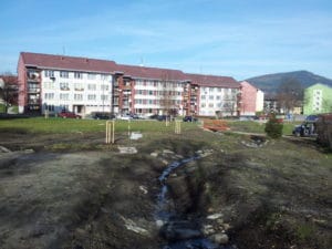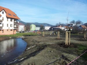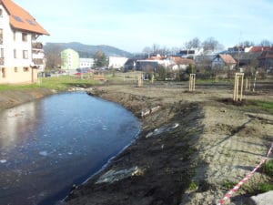 Obnova vodního toku v intravilánu Vyššího Brodu s parkovými úpravami podél koryta – výsadba vzrostlých alejových stromů a keřů.