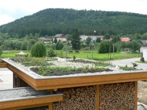 Při založení zelených střech bylo nutné zvolit odolné dřeviny s ohledem na nadmořskou výšku lokality. Investor měl navíc požadavek na barevnou pestrost ( postupná doba kvetení) dodaných rostlin. Výsledek je přes omezený výběr výborný…